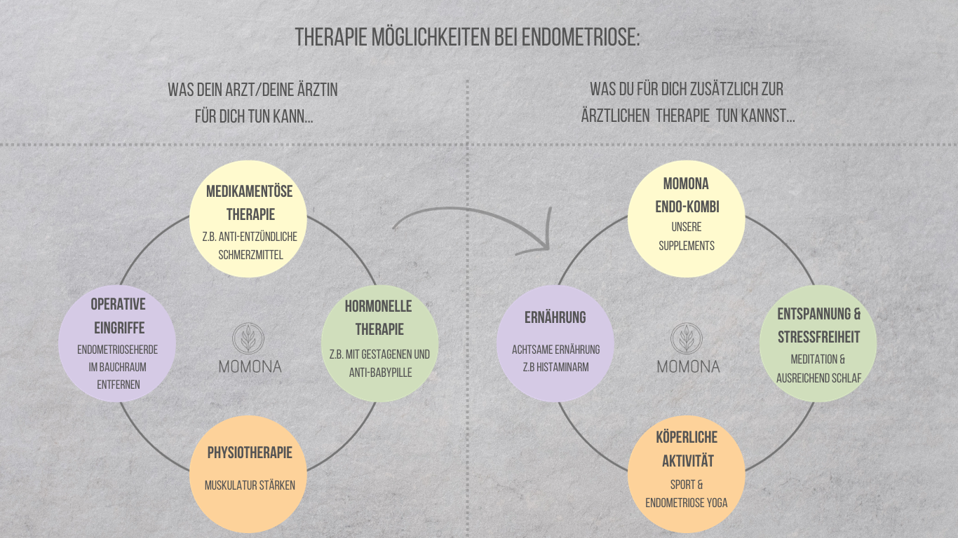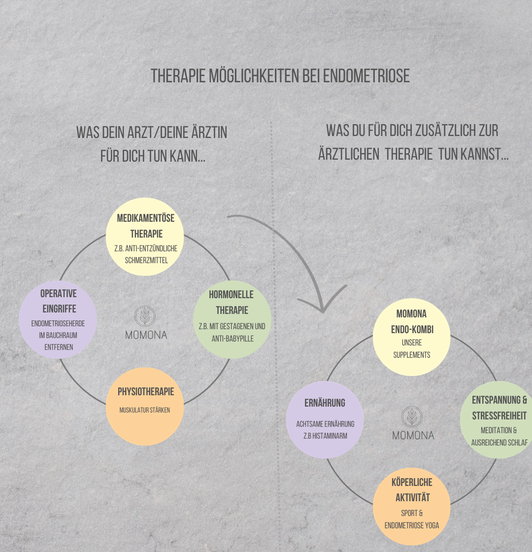 Endometriose kann eine Herausforderung sein, aber Momona ist an deiner Seite. Unsere Endo Kombi wurde als eine mögliche Ergänzung zur multimodalen Therapie bei Endometriose entwickelt, um deinen Weg zu mehr Wohlbefinden zu unterstützen.